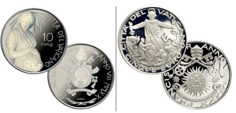 En su sitio web, la CFN del Vaticano señala que de la nueva serie de ocho monedas, “la moneda de plata de 20 euros, obra de Chira Principe, está dedicada a un argumento actual que está muy en el corazón del ‘Papa Francisco’ : «los cuidados para afrontar la pandemia y la necesidad de vacunarse”.